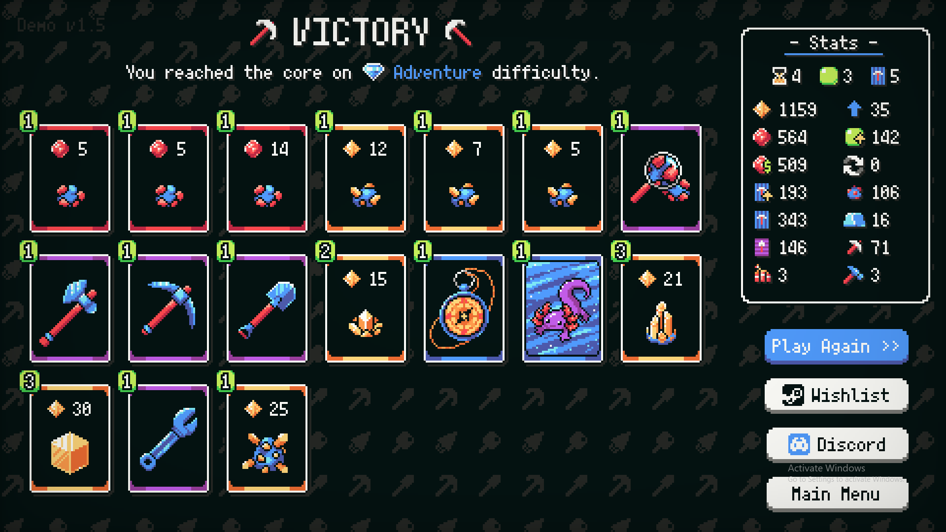 First time trying out cube, to be honest i think cube is kinda meh even though i won with it I feel like overall its kinda weak because to work it needs tool support and other ores have comparable upsides or are better ( the +1 per upgrade seams to be similar numbers while not needing tool support, score pando has ore that also kinda scales with it, kaz support is stuff you basically always want anyways meteors and geodes and draw). Drill theoretically has good synergy with it but every time you use it you arnt going to have energy to upgrade the cube and feels bad to not upgrade it and also has its on energy issues that are harder to resolve because you cant cheat it out with a tool so you basically need a super thin deck or get really lucky with the most expensive card in the game? minecart. Corkscrew in theory works well with it to but corkscrew feels to similar to prospect for me to really want to add it, and seams like it would make prospect turn into a brick knowing theres a better version in my deck